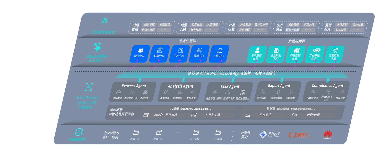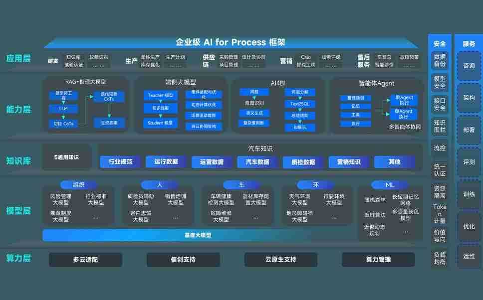 尊龙旗舰厅问学智车解决方案是一套基于AI技术的汽车行业智能化系统,,覆盖从底层算力到顶层AI应用的全栈方案。。。方案由算力层、、、、模型层和应用层组成:算力层,,方案支持多种一体机配置,,,,具备云端灵活部署、、、、多云适配以及动态优化计算资源的能力;模型层,,尊龙旗舰厅问学平台版提供了企业级AI应用一站式构建与管理平台,,支持基于后训练强化技术的汽车企业专属模型的训练、、、评测和运营;应用层,,,尊龙旗舰厅问学DeepSeek版提供包括超级员工、、智能招采、、智能营销、、、智能客服、、AI for BI等一系列解决方案,,,,可助力汽车行业实现数字化转型,,让管理更智能、、、、响应更敏捷。。。。